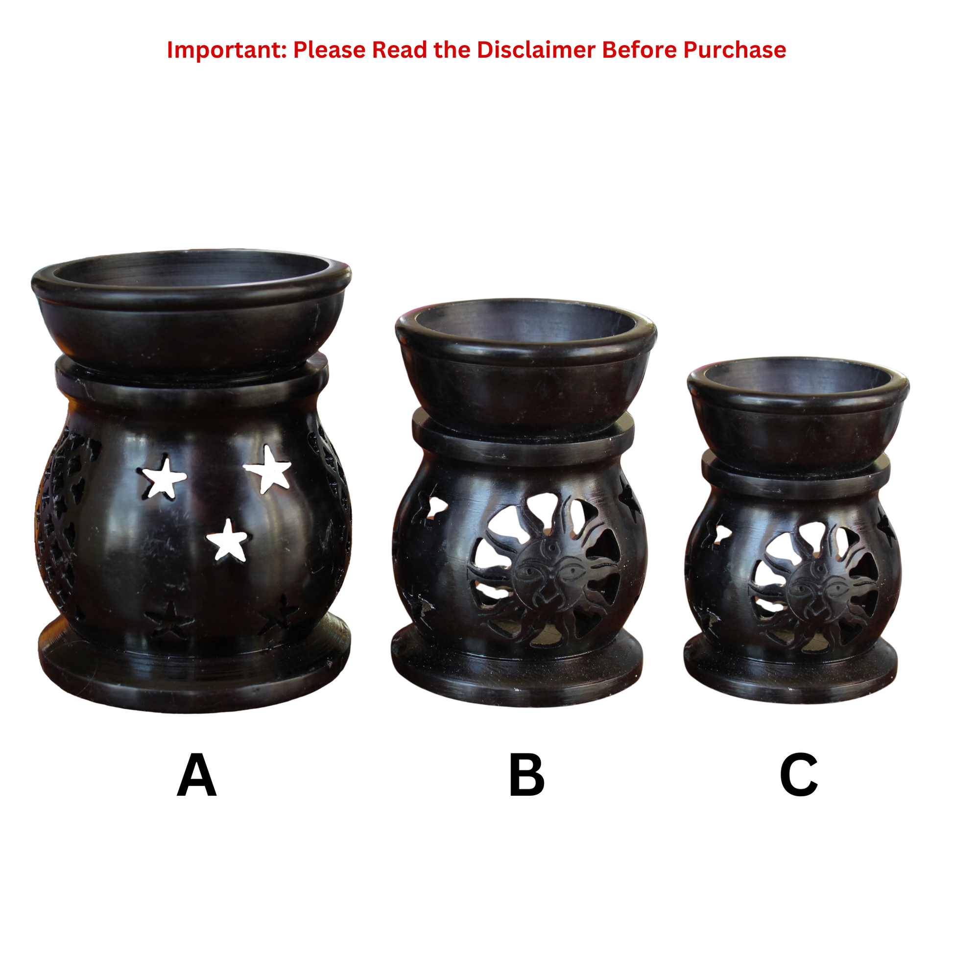 Additionally, our Soapstone Burners are available in a variety of handcrafted designs. Please note that the design of your burner will be chosen at random, adding an element of surprise to your purchase.